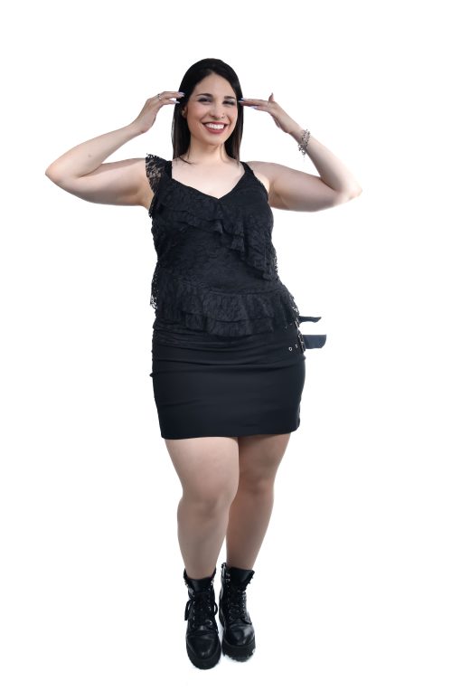 2267 – Short/Pollera Mora – Bengalina y Short Microfibra Elastizada